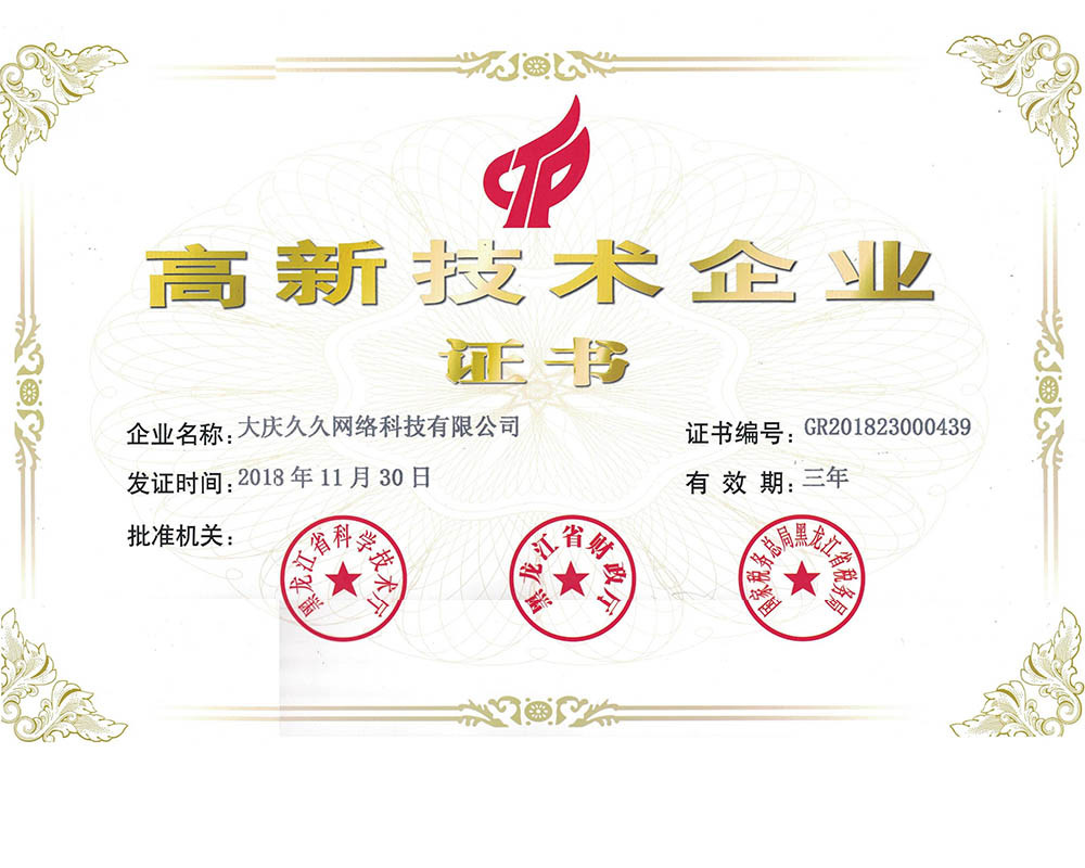 久久網(wǎng)絡(luò )榮獲高新技術(shù)企業(yè)榮譽(yù)證書(shū)